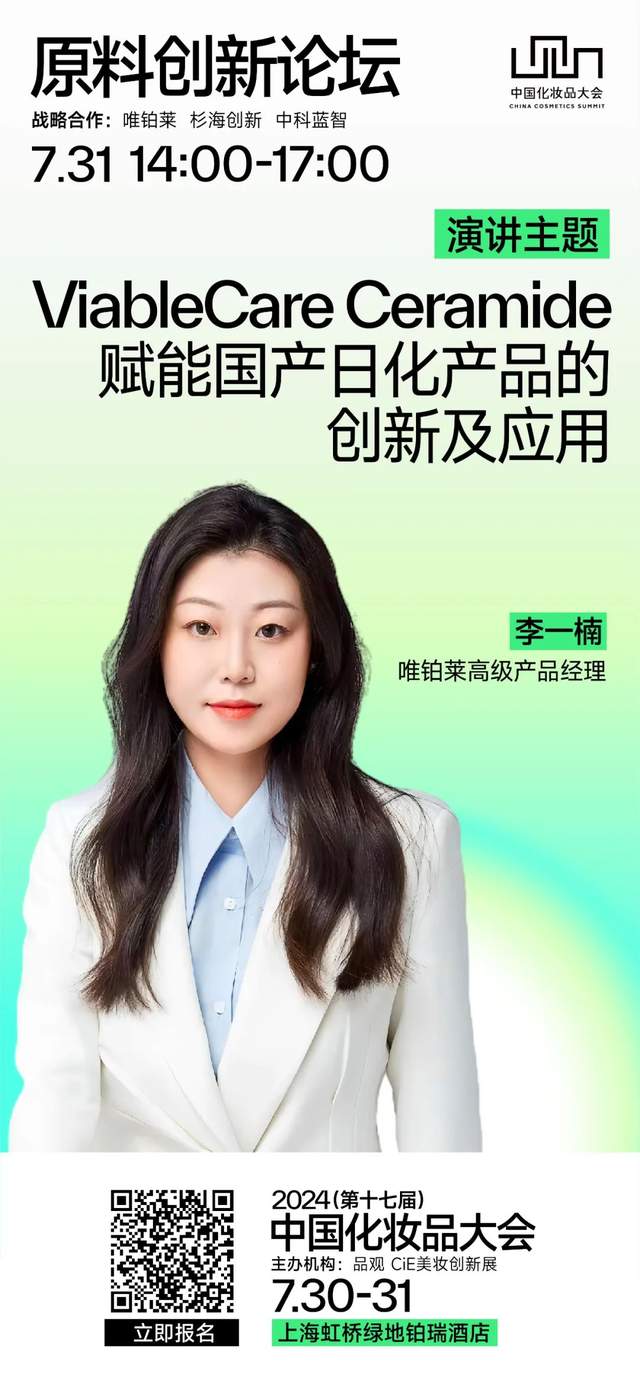 演講主題:ViableCare Ceramide賦能國產(chǎn)日化產(chǎn)品的創(chuàng)新及應(yīng)用